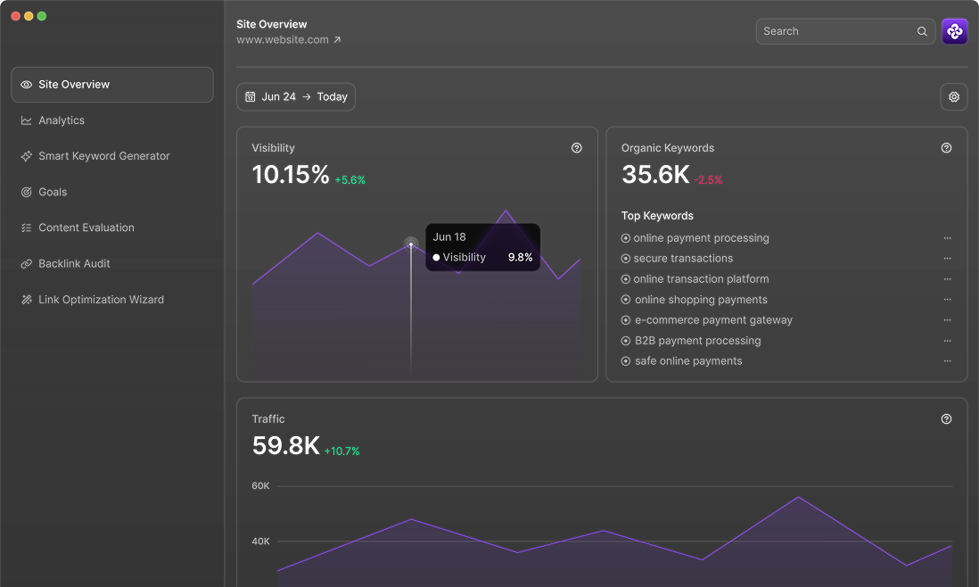 Elevate your site’s visibility effortlessly with AI, where smart technology meets user-friendly SEO tools.